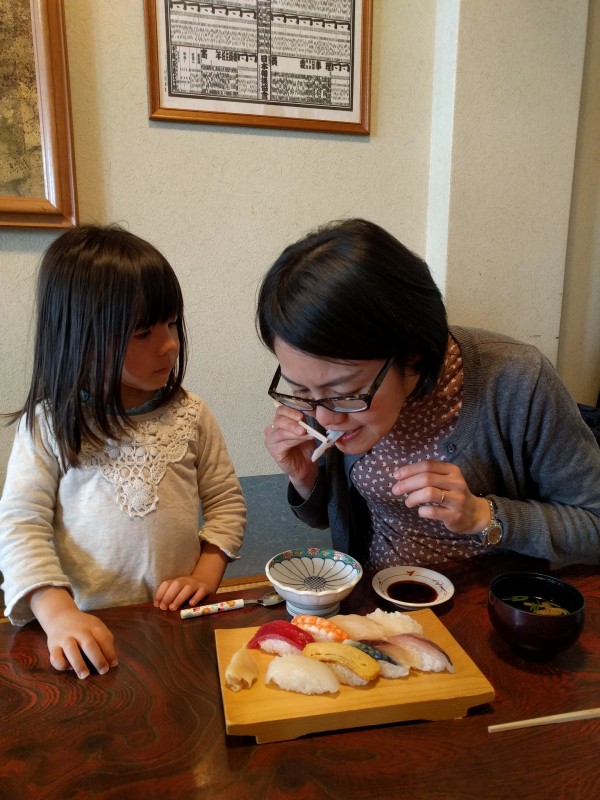 13:02:55 Our boat after dropping us off on dry land. | 13:20:59 Quick lunch in one of the eateries in the harbour (sushi of course) before getting the bus back to Shin-Yamaguchi. | 13:25:09 This sushi place also did tempura conveniently. | 15:10:10 Ice cream in Shin-Yamaguchi before we got the shinkansen back to Hiroshima. |
