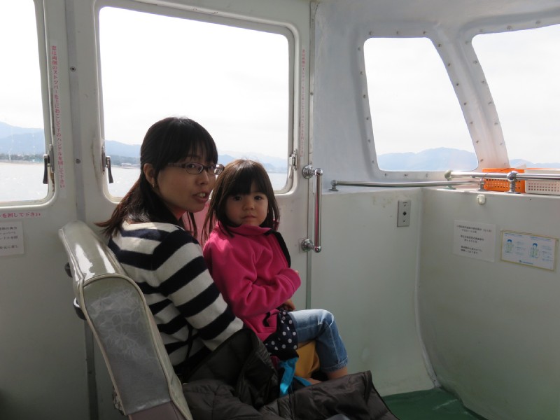 11:05:44 Morning coffee at Cafe Struggle in Senzaki, a surprisingly well equipped hipster coffee shop ran by a suprisingly grumpy man. | 11:13:17 My grumpy macchiato at Cafe Struggle. | 11:24:06 Senzaki had some really ancient looking buildings on the main shopping street. | 11:48:42 On the boat trip around Omi Island now - we had the boat to ourselves. |