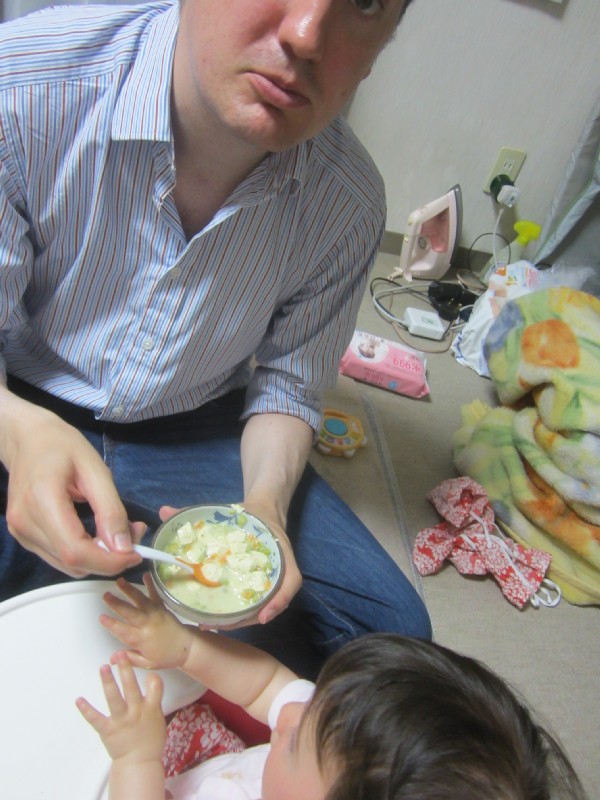 Feeding Erika the baby version of the Thai curry I made for the rest of us this evening.