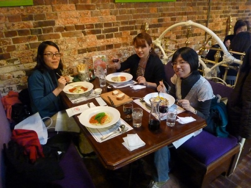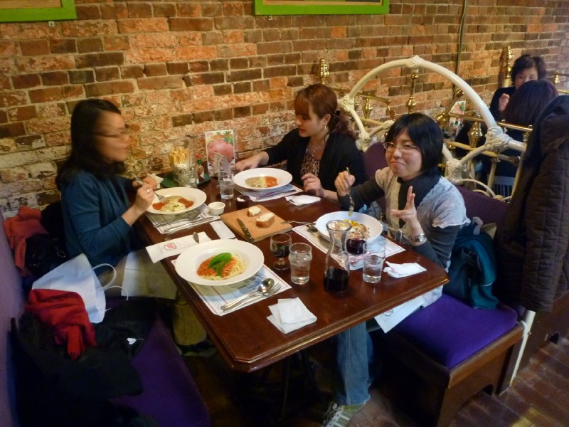 | 13:38:40 There's the ship Chie's sister works on. | 13:38:48 ...a bit closer up. | 14:06:28 Lunch with Hiromu-chan and Yuka-chan in the Old Spaghetti Factory. I think this is actually an American chain which has a few restaurants in Japan. |