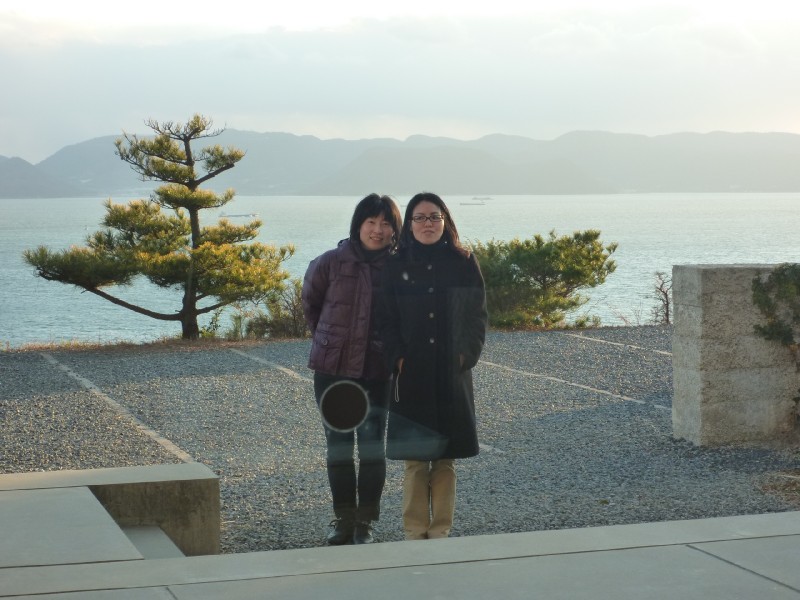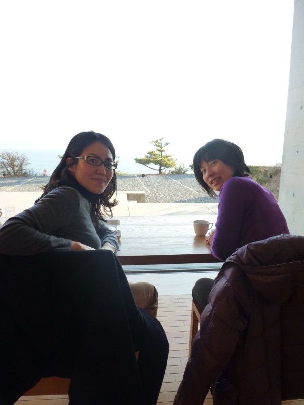 | 14:56:55 Nearly at Chichu Art Museum now. Again no pictures allowed inside! | 16:01:09 Taken from the cafe of Chich Art Museum, the one place where they allow photography. | 16:01:41 Chie and Masumi-san in the cafe. |