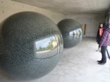 | 14:43:57 An installation by Walter de Maria, using similar granite balls and those strange golden structures as a rather grand and impressive room in the Chichu Art Museum. | 14:44:07 Reflections here look a bit like visors on crash helmets. | 14:46:03 It was too cold to make me want to re-take the picture of this sculpture. |