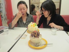 20:41:11 After dinner we went to a place that did shirokuma - a local speciality involving crushed ice. | 20:50:30 ....it's far too big as well. The decoration on top is meant to look like a bear's face. | 20:51:05 I had a slightly more modest sized chocolate sauce version. | 20:51:36 It wasn't that great. |