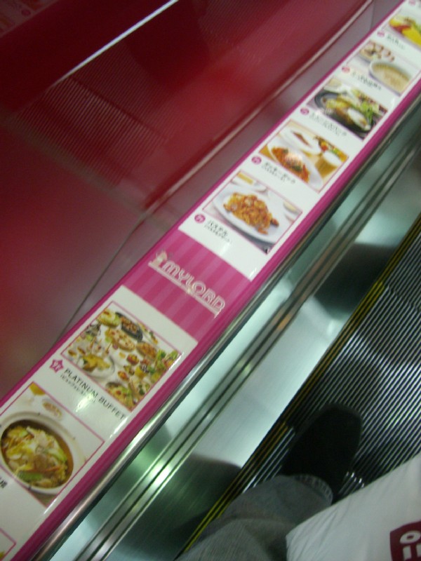 | 17:31:21 A quick shot of Shinjuku, where we went to do a quick spot of shopping while Aoki-san was at a meeting. | 17:35:56 Even the escalator handrails have been turned into advertising inventory! |