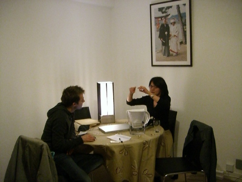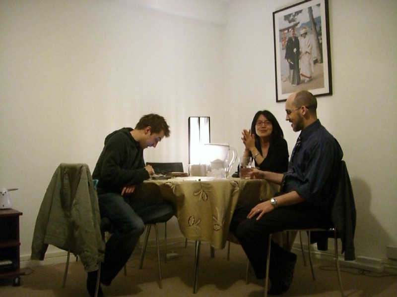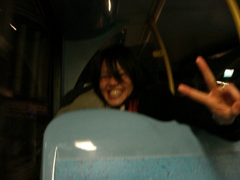 | 01:09:52 Outside Assa - 10/10 for a Friday night karaoke venue. | 01:20:57 Random on-the-bus-on-the-way-back picture. | 01:56:28 Back at our flat now, a couple of random pictures before we all passed out. |