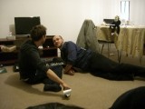 | 01:58:37 ...more of the same. | 02:43:36 Stew and Leon having a bit of a play on my keyboard (I bet we were so popular with the neightbours) - annd if you look at Stew's right hand you might just about be able to make out some jagariko. |