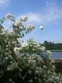 | 14:59:47 Nice bit of flora, with the hot air balloon thing in the background. | 15:00:58 Yet another self timer shot - we'd found a relatively good flat topped wall by this point. | 15:01:37 Chie sitting on the grass in front of the main bit of the castle - looks nice doesn't it? |