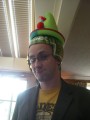 | 16:28:07 However, adding his own hat on top helps to take the silliness down a notch a bit. | 16:28:13 Note the bit of make-up detail as well - nice! | 16:44:13 Stu actually wearing his own hat. He seemed very relaxed in it. |