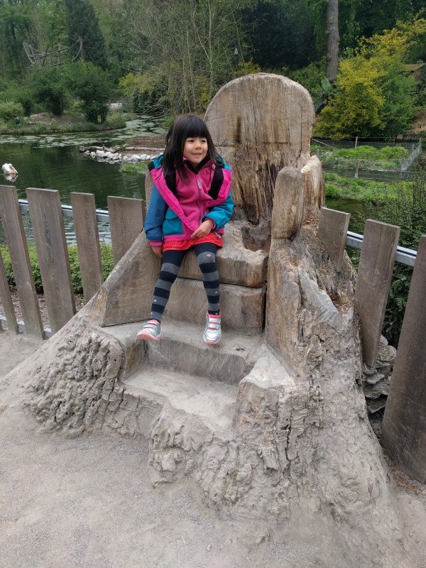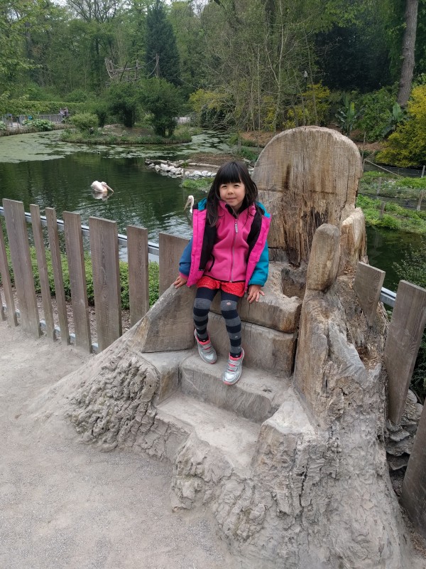 11:53:15 Erika seemed to like these chairs carved out of tree stumps. | 11:53:25 | 12:05:40 After leaving the zoo, walking through the fairground. It hadn't started operations for the day yet, which fortunately allowed us to drag Erika through so we could have some lunch. | 12:38:43 Beer at lunch. |