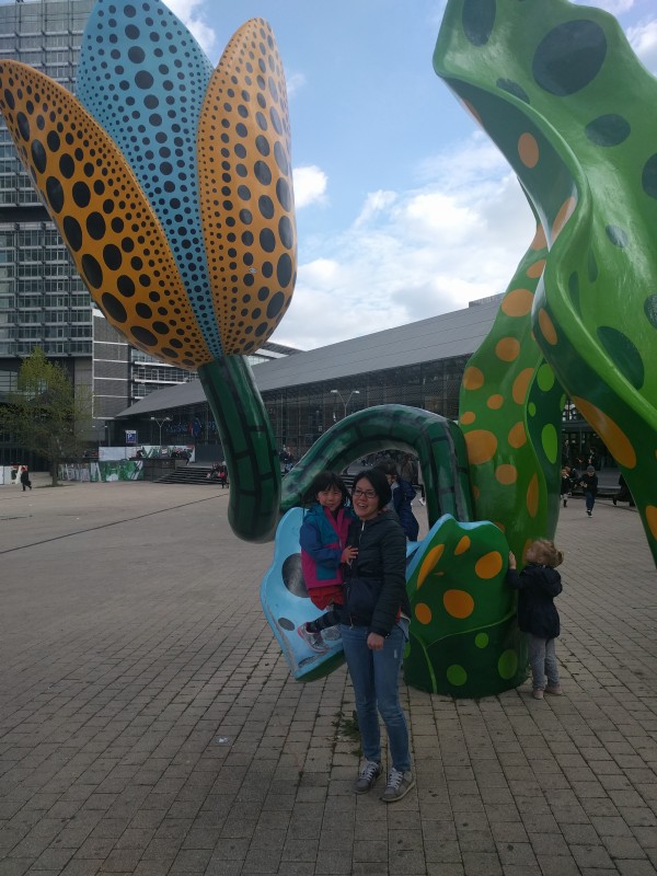 14:38:16 Erika on a big wheel. | 14:46:09 Erika on the carousel. | 17:22:52 Following Erika's tantrum at the fairground when we said we wanted to do some sightseeing now, we walked back to the hotel, had a rest for a bit there, then headed out again. These are some Yayoi Kusama sculptures near Lille Europe station. | 17:22:59 |