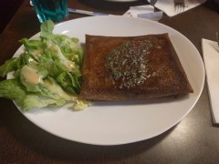 18:15:52 Erika trying her fizzy mint drink. I really thought this would have been more of a hit! | 18:26:41 Chie and Erika with the crepe (or was it a gallette?) they shared for dinner. | 18:26:48 My crepe / gallette. My favourite part was the salad dressing. | 19:05:48 After dinner we went for ice cream. |