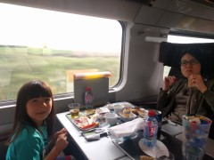 16:57:43 In the Eurostar departure lounge now - we were greeted by the Easter bunny! | 17:50:08 Erika playing with the Lego we bought from the Lego shop on the Eurostar. | 17:55:35 Our dinner on the Eurostar. It was pretty naff to be honest, I hardly ate any of mine. Why, in 2017, is quiche still a thing? Surely culinary science has moved on? | 17:55:41 |