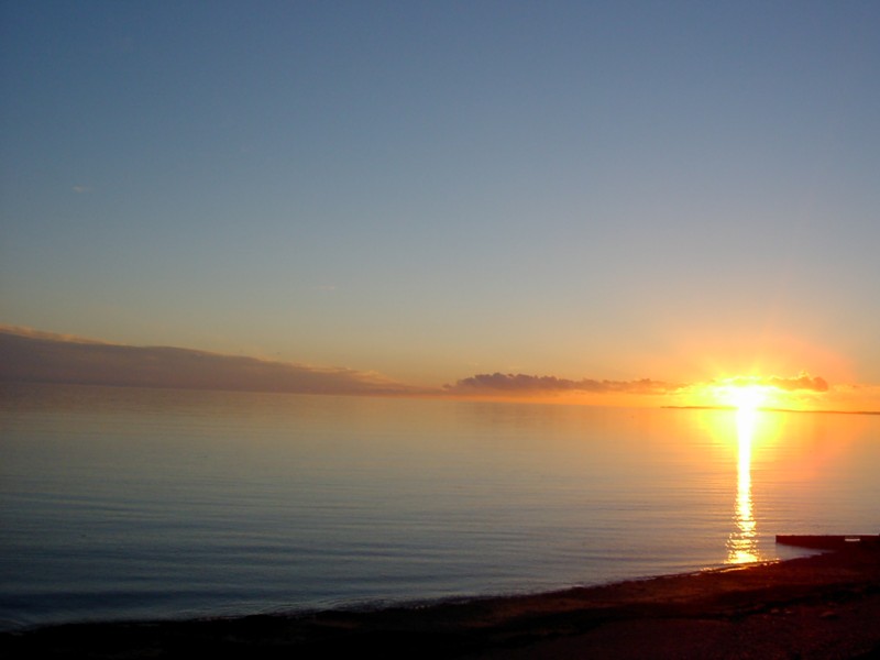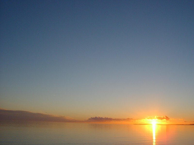 The sun is just about to be lost behind that headland.