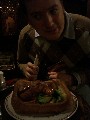 | 21:30:48 Oh the guilt - this was our second dinner of the evening. We had popped into the Blackfriars for a quick drink, and the people at the next table were eating these giant Yorkshire puddings... we couldn't resist. | 21:31:05 Me just about to tuck in... with a look of pure guilt on my face. |