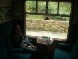 | 13:22:46 The cafe at the station - rather charmingly a parked buffet car. | 13:24:55 Chie about to board the train. | 13:28:38 Just about to set off now. |
