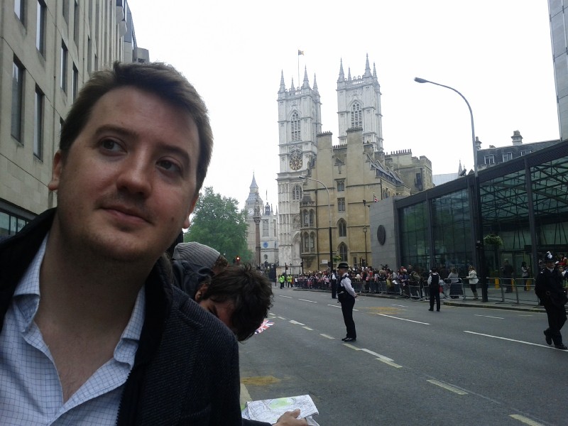 11:38:02 | 11:38:34 Me and Westminster Abbey. | 11:41:53 Thinking we might not get to see very much at all, we were delighted when we discovered all the carriages (albeit before any royals got on them) would pass by this way. | 11:41:59 ...more carriages... |