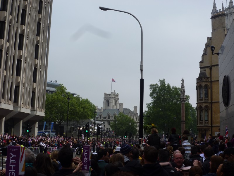 10:58:43 This is about as close as we managed to get before the ceremony started, so we couldn't really see anyone going in to Westminster Abbey. | 10:58:48 | 11:02:13 | 11:09:43 We decided we might have a better chance of seeing something if we moved to the other side of the road. |