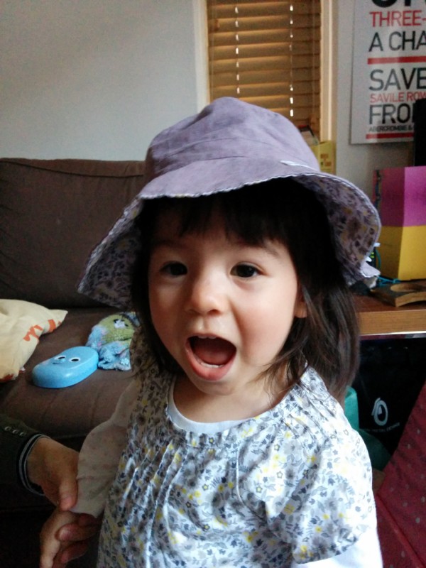 Erika wearing the hat and matching top we bought for her in Menton last September.