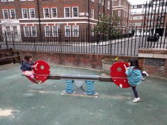 14:25:00 Erika and her friend of a see saw. | 15:20:32 Erika and her friend looking like trouble on the streets of Pimlico. |