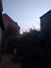 19:51:24 Nice sky over the garden which didn't really come out in this picture. | 19:52:08 Had a post dinner whisky out in the garden as it was a pleasant evening. | 19:57:34 Didn't like this Port Wood Laphroaig to begin with but it has grown on me. | 22:12:40 Tried to search for the artist who painted my portrait this evening, but couldn't find an obvious match on the web. |
