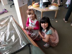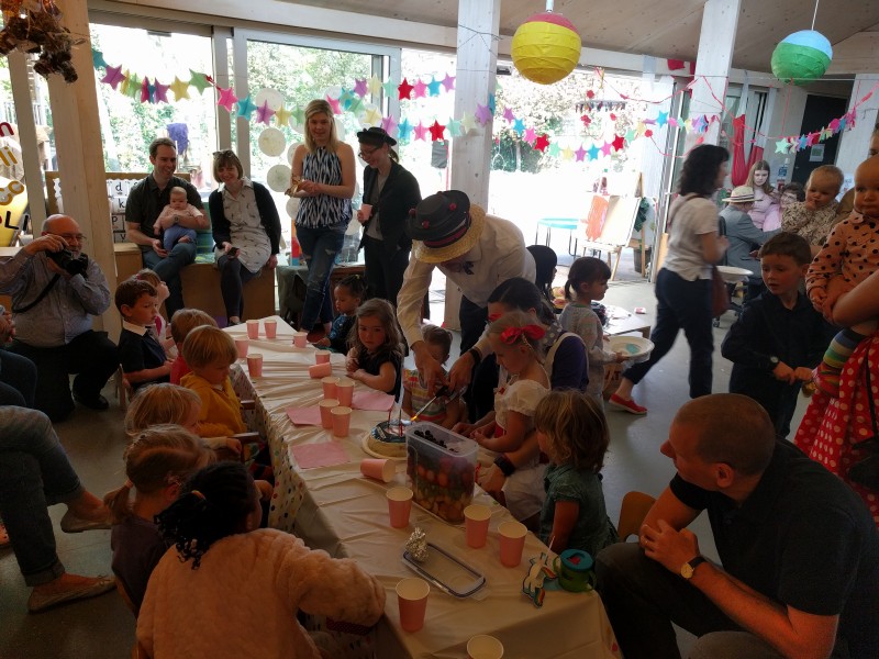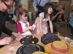 11:57:59 Erika and one of her friends in her old nursery, where the party was held. | 12:16:12 Erika and another friend collecting chocolate coins. | 12:22:30 Here comes the birthday cake. | 12:35:28 Hat making. |