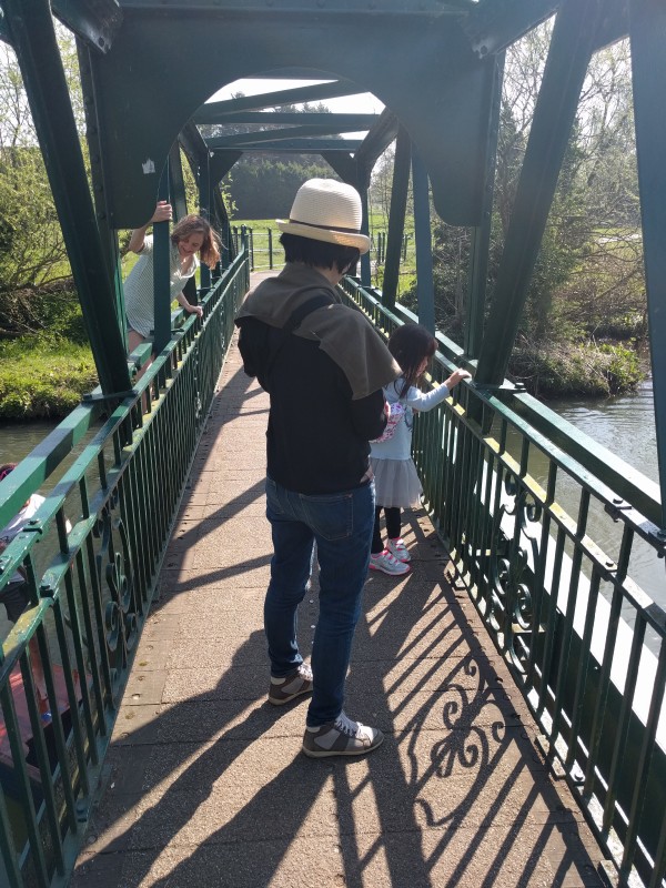 11:34:26 Chie and Erika on a bridge over the Cam, as a punter was busy climbing over. | 11:43:59 Walking along the Cam to Grantchester. | 11:44:27 | 11:44:54 |