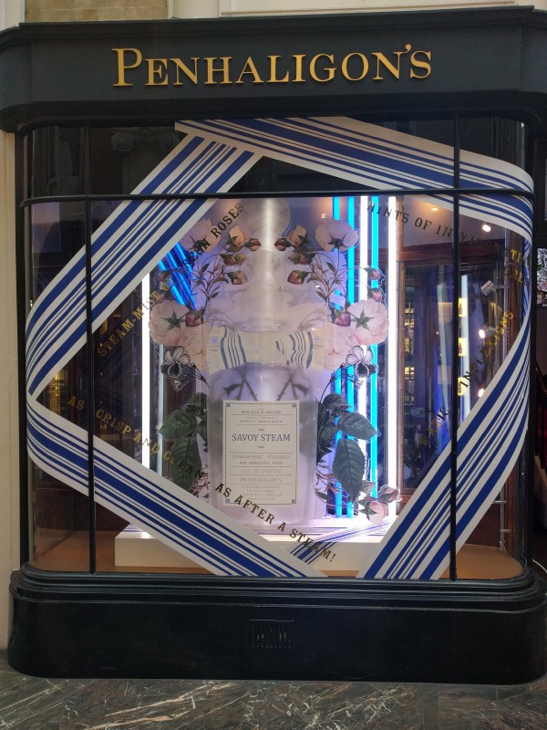 10:16:36 The Burlington Arcade, wonderfully quiet this morning. | 10:17:48 The window of Penhaligon's. | 11:43:25 A very large bottle of Champagne (I forget the official name for it) and an interesting contraption. | 11:44:04 Outside BBR. |