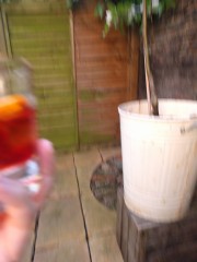 15:26:46 | 18:37:49 Oh dear my camera mangled this. | 18:38:04 Apple blossom still going in the back garden. | 18:38:58 A Negroni in the orchard. |