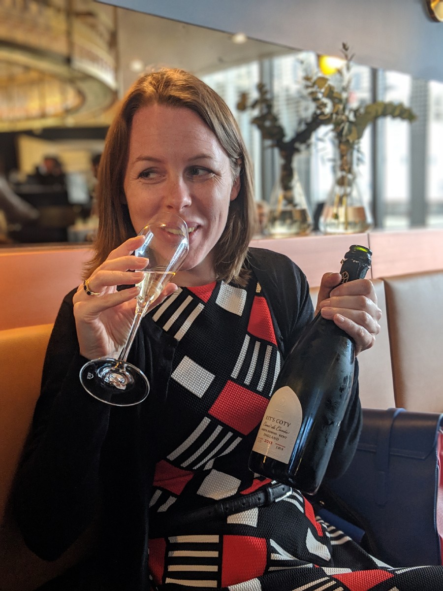 14:44:46 Here on the roof terrace of Alfie's Antique Market, Ricardo brought this along as a present (they don't actually sell it here). | 17:30:11 Later on, some Kit's Coty Coeur de Cuvee 2013 at the Chapel Down bar in Kings Cross. | 17:30:28 | 17:30:52 Ricardo's girlfriend Katherine modelling the Kit's Coty. |