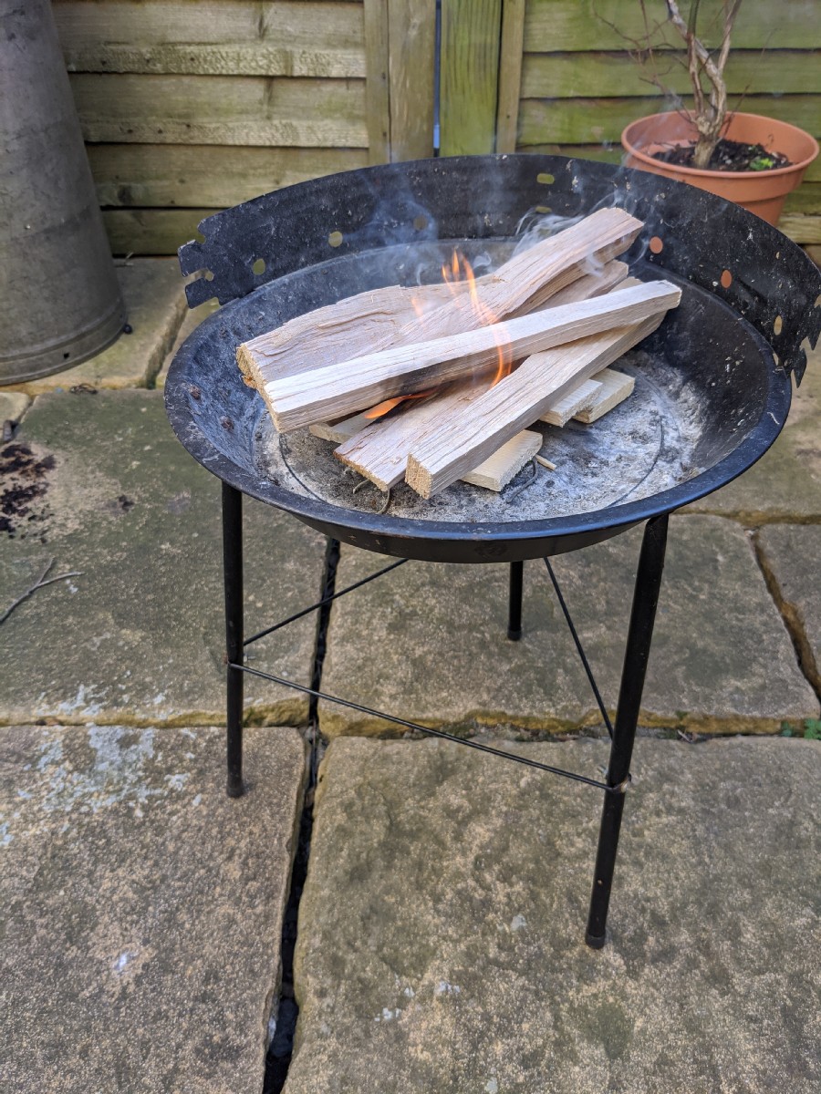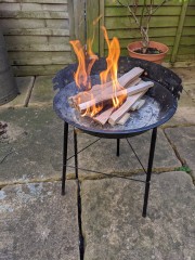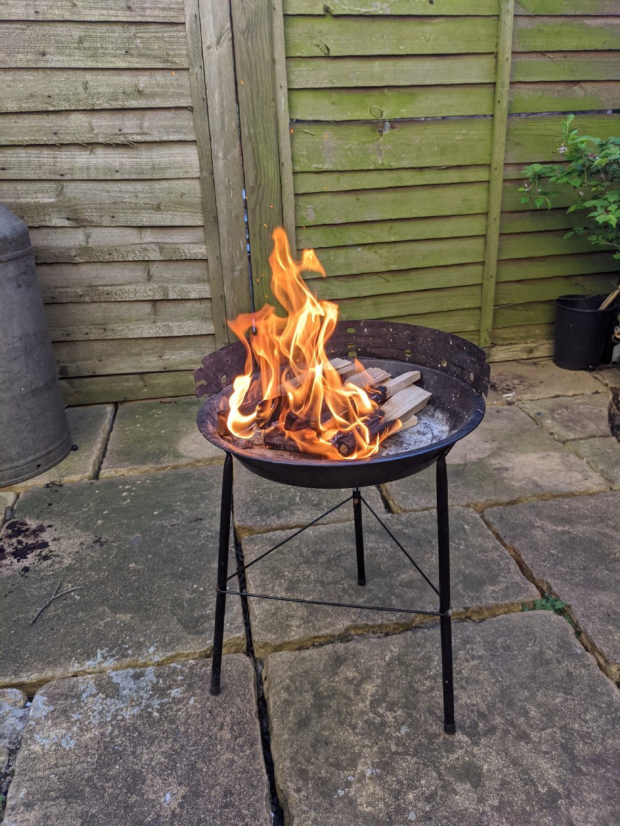 17:33:45 Unfortunately it all just burnt through very quickly and didn't leave much in the way of embers to cook on. | 17:35:57 Perhaps needed bigger chunks of wood? ...but there was a limit to how much I could safely get into this barbecue. | 17:39:58 Oh well, it was nice watching it burn. | 18:07:50 Fired up the Biolite Campstove instead. |