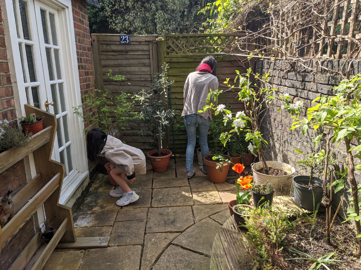 12:08:48 Actually managed to get an Amazon Fresh delivery finally! | 12:39:01 Chie and Erika in the back garden doing an Easter egg hunt. | 12:39:07 | 12:39:47 |