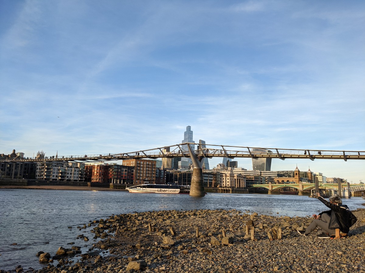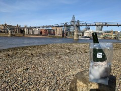 16:35:23 The view from Blackfriars station of the Thames. | 16:42:19 The view across the river from the Thames foreshore at Bankside, looking towards the Millenium Bridge and St. Paul's. | 16:46:16 Spotted Andrew from a distance. | 16:57:14 Some of the Sugrue Cuvee Boz on the foreshore. |