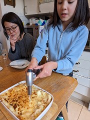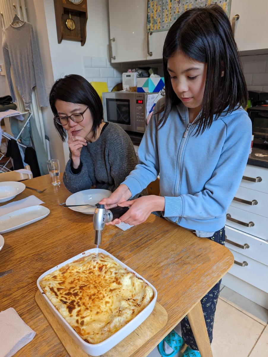19:11:00 Erika blowtorching the lasagne we had for dinner tonight. | 19:11:04 | 19:11:07 |
