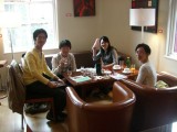 | | 12:48:21 At the Green, where we had lunch - here's Chie's colleague, along with his wife and friend who was visiting from Japan. | 12:50:22 My lunch - a goat's cheese and beetroot tart. The shoestring fries were particularly more-ish. | 14:53:53 In the club now - not sure if you can make out the impressive collection of empties there... |