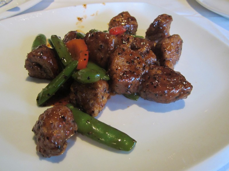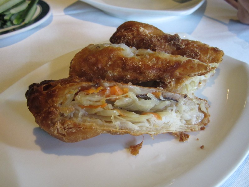 18:37:01 | 18:40:06 Spring rolls. | 19:01:51 Beancurd and aubergine hotpot. | 19:07:12 Mock chicken with sugar snap peas. Nice sweet/peppery sauce with this dish. |