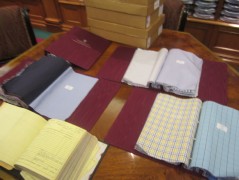 12:57:05 The current sculpture on display in Economist Plaza. | 13:09:41 I was looking for a barber in St. James's, and found this tiny little place in a back street. Unfortunately it is closed at the weekends. | 13:26:36 Choosing an alternative cloth for one of the shirts I ordered at Turnbull and Asser. | 16:09:11 Picked up a couple of new cocktail ingredients today - Carpano Classico vermouth... |