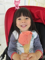 13:02:46 | 13:59:53 Erika with an ice cream (actually sorbet) which was far too big for her, at Olivogelo. | 14:54:57 Later on I walked to St. James's while Erika was asleep in her buggy. Slightly fascinated by this recently reopened pub, the Blue Posts, the building ot occupies was completely demolished and rebuilt, but odd the pub reopened with the same name in the same location. | 18:25:32 My little bit of early evening relaxation out in the garden once the lasagne I made for dinner had been bunged in the oven, and the kitchen had been cleaned - a Negroni and those little fish shaped snacks from Norway. |