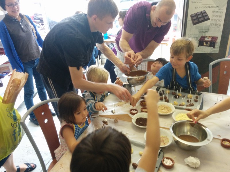 10:57:38 Wrapping Kayano's present after picking it up from Kentish Town delivery office, just outside Kentish Town station. | 12:11:51 Chie and I sneaked off to Brixton village for a bit while Erika and her friends were busy at the chocolate museum. | 12:25:10 This noodle dish at Mama Lan was much appreciated. | 12:55:03 Erika at the chocolate museum. |