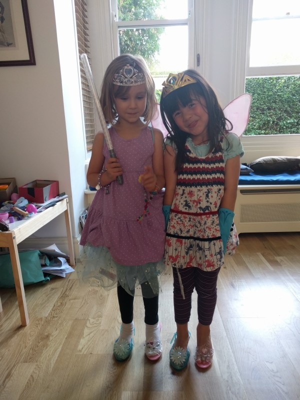 Zia and Erika dressing up as princesses/fairies back at our place.