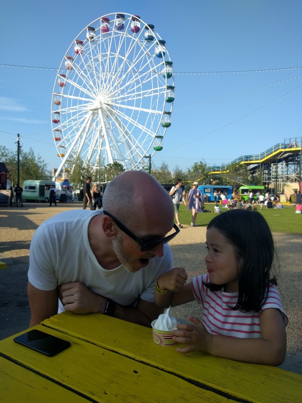 13:25:15 Aiko the only one brave enough to actually sit on a horse. | 13:39:23 The girls having scampi and chips for lunch. | 13:39:25 | 14:44:10 On the big wheel. |
