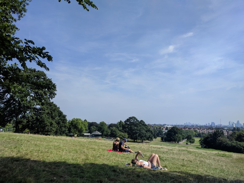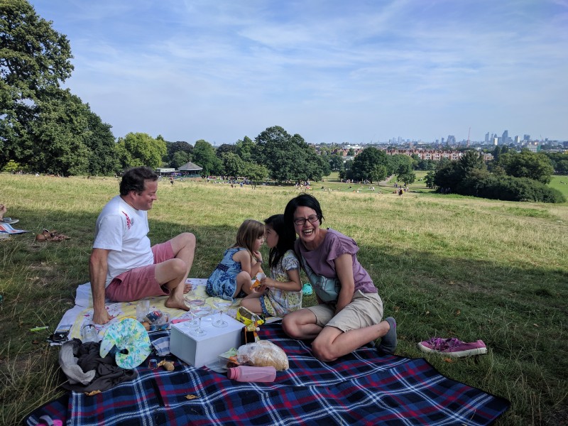 13:48:15 Views over the heath. | 13:58:42 | 14:01:43 Brought some Nyetimber with me and an improvised ice bucket. | 15:22:06 Our group on the heath. |