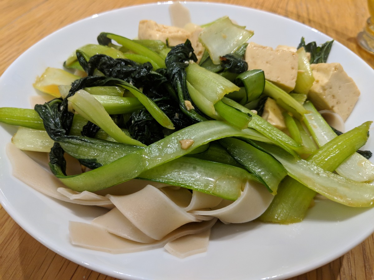 19:45:57 Erika's room after the main part of the soundproofing work was finished. | 19:46:05 | 21:48:11 For dinner I used the Tatsoi I had also bought from Chapel Market yesterday. | 22:10:40 Not the most visually appealing dish, but it felt fairly healthy and tasted OK. |