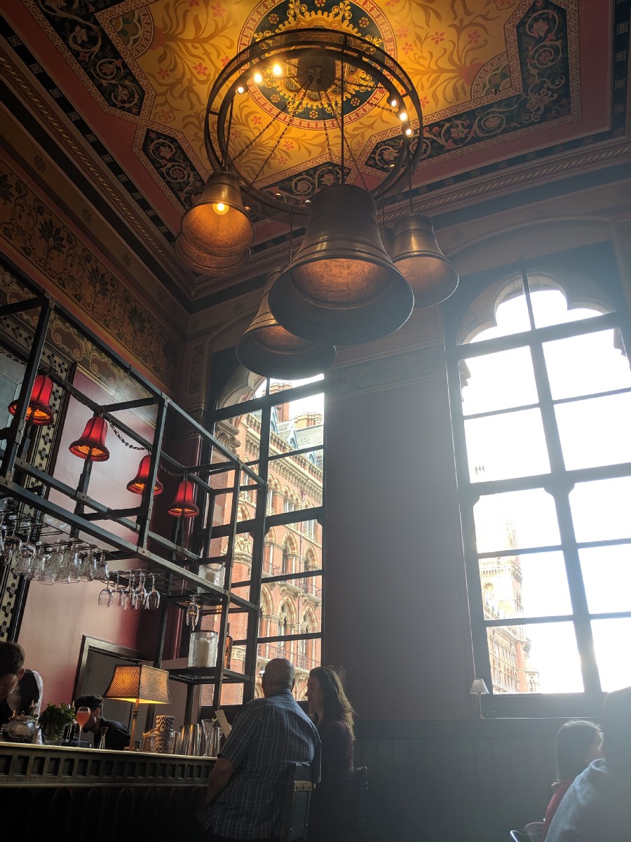 17:20:28 Nice picture of me and Chie in the entrance to St Pancras taken by Erika. Only a tiny bit of finger in shot! | 17:30:24 Inside George's Bar at the Gilbert Scott. | 17:32:28 Rhubarb Gimlet, my favourite cocktail at the Gilbert Scott. | 17:32:45 Erika's mocktail and Chie's cocktail. |