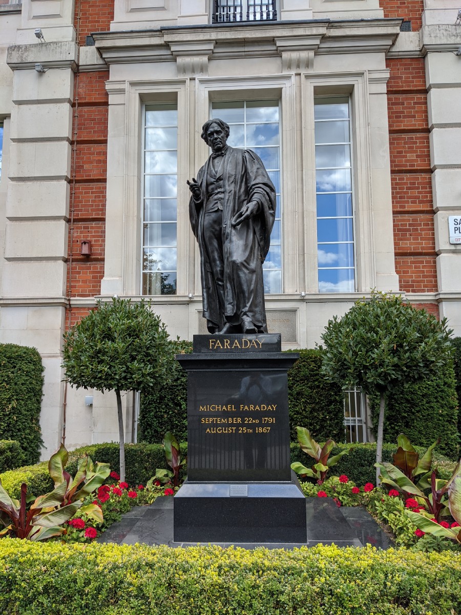 12:50:34 The view from Blackfriars station. | 12:53:00 What strange times we live in. | 13:06:36 Statue of Faraday. | 13:15:31 Trafalgar Square. |