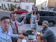 20:44:25 I was ensnared by some of the regulars at the Pineapple as I was walking past, and sat outside here for a while. | 21:00:18 The other chap who frequents the Pineapple and is sartorially inclined as he was leaving. | 22:42:04 Later on I decided to haave a very late dinner, cooked out in the garden. | 22:46:45 |
