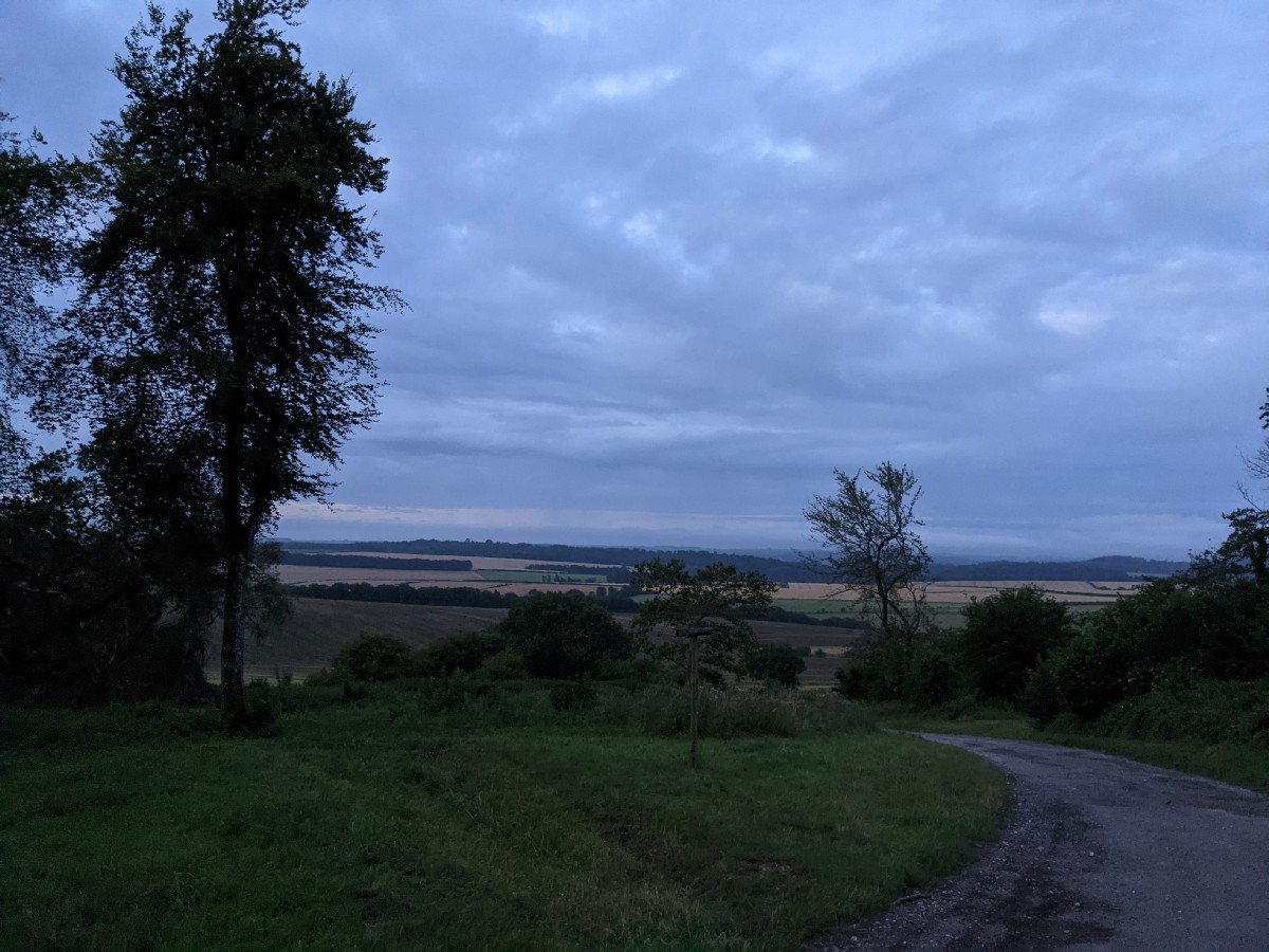 05:43:21 Seems to be getting misty over there now. | 05:46:00 However the skies were clearing in the direction I was headed. | 05:51:07 Scabious, my old friend. | 05:54:47 Fonthill Bishop. |