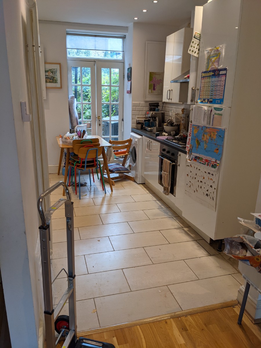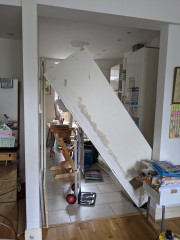 11:26:47 Thanks to my very handy trolley I was able to get the cupboard out. | 11:45:18 This was really quite satisfying. | 17:41:32 ...and then later on I set to it with a hammer and quickly managed to dismantle it. | 17:42:28 Not quite sure why I took a photo of this instant mash at this point - perhaps it was to send to Andrew, who had recently had some dental work done. |