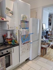 10:48:51 I'd had to move the shoe rack for the electricians earlier this week, and noticed some of the shoes were incredibly dusty. So as part of my cleaning marathon today I hoovered a load of shoes. | 11:36:22 Behold the new fridge freezer. | 11:41:56 I had to remove a bit of skirting board to fit it into the gap. | 11:48:31 There it is, happily installed. |