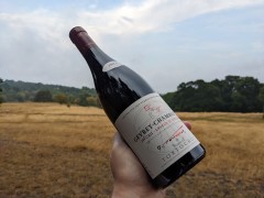 18:52:01 Heading over to the barrow. | 18:54:38 The view from the barrow. | 18:54:53 This evening's wine, a Gevrey Chambertin 1er Cru "Lavaux St Jacques" from Domain Tortochot. Quite a complex wine, with spice, tobacco, dense berry character, slightly leathery, and a bizarre note of sweetcorn (never found that before)... Eventually the sweetcorn gave way to mushroom, so I assume this was some kind of Brettanomyces influence. | 18:54:59 |