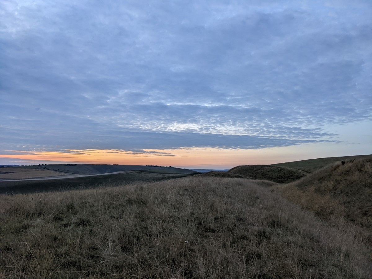 06:07:24 There was some really nice walking along these further reaches of the Wansdyke Path. The path mostly follows the embankment of the Wansdyke, which gentle undulates and gives nice views over the surrounding landscape. | 06:17:59 I think this is around the official moment of sunrise. | 06:22:04 Glimpse of the sun over there. | 06:22:07 Yep the sun has definitely risen. |